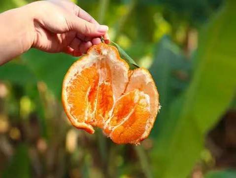 芸香科柑橘属杂柑类果实(由清见橘橙与椪柑杂交培育),为优质晚熟柑橘品种。果实呈高扁圆形或倒阔卵形,成熟后果皮呈深橙黄色,果面光滑有细微光泽,“浓甜带微酸”“汁水充盈” 为标志性特点,入口有清新橘香,余味无涩感。