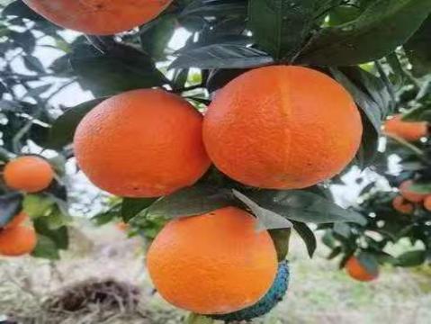 芸香科柑橘属常绿小乔木果实,属于晚熟脐橙特色品种。果实呈圆形或椭圆形,成熟后果皮底色为深橙黄,果面覆盖不均匀的胭脂红或暗红晕,果顶具典型 “脐眼”闭合或半开放,内藏小果瓣。